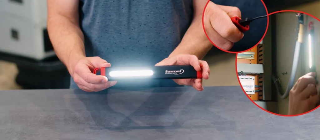 La tecnología de iluminación de alta calidad con intensidad luminosa regulable de 60-360 lúmenes garantiza un área de trabajo óptimamente iluminada. La pértiga LED recargable FORMAT convence por su carcasa de aluminio delgada y robusta. Es tan compacta que se convertirá en su compañera inseparable en el trabajo diario. La lámpara cuenta con la certificación IP 54 y ofrece una protección adecuada contra el polvo y las salpicaduras de agua.