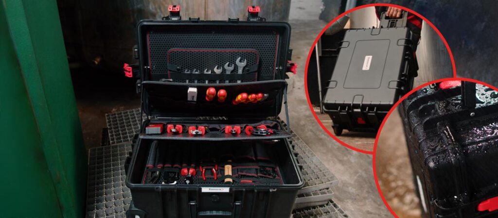 Idealmente equipado para cada aplicación: El maletín protector FORMAT de polipropileno especialmente resistente. Perfecto para quien necesita muchas herramientas cuando viaja y también trabaja al aire libre. Fácil de transportar gracias a la función trolley.